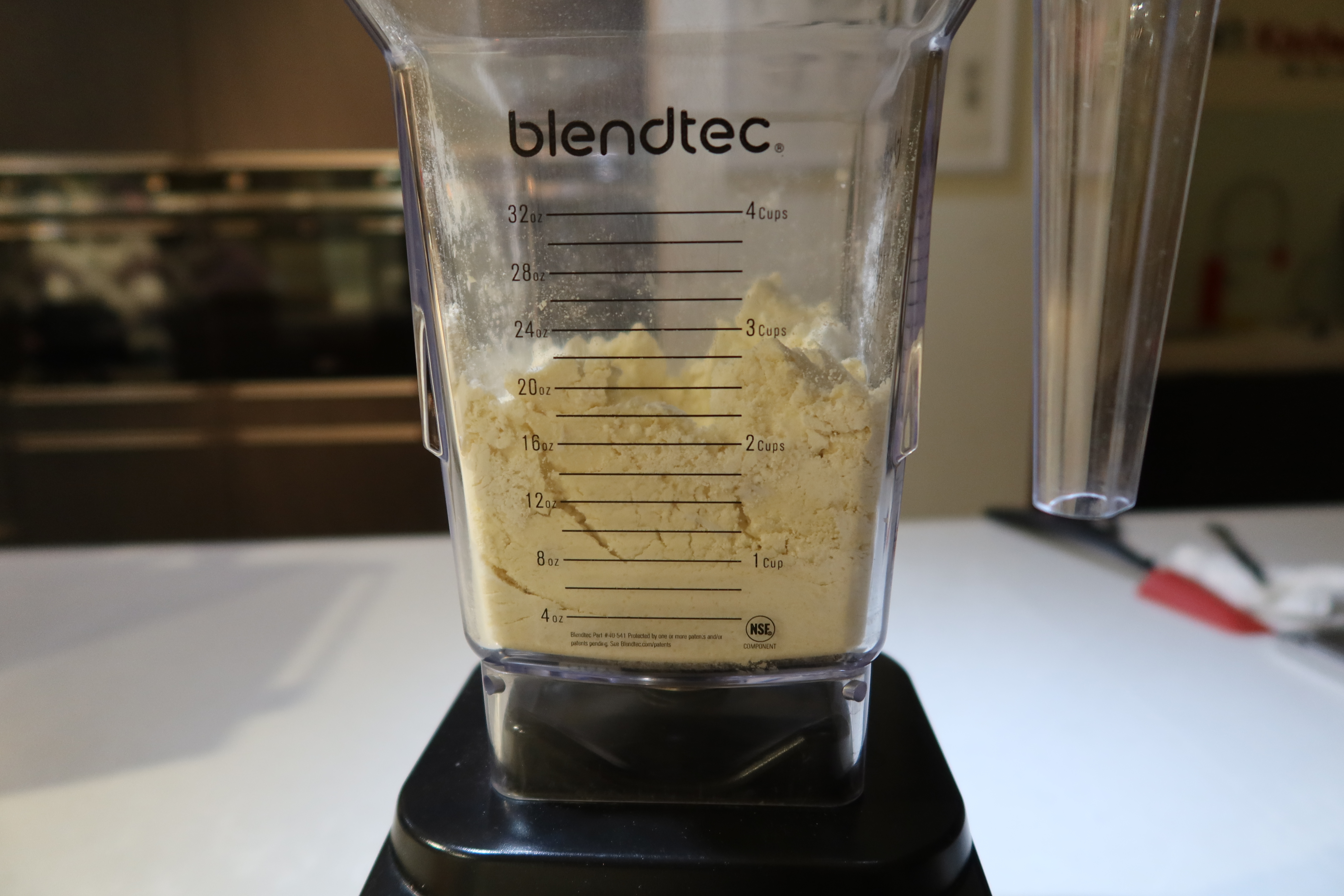 將冰的無鹽奶油切成小塊,和低筋麵粉、泡打粉和糖一起放進調理機,以瞬轉模式將上述食材打成奶粉狀