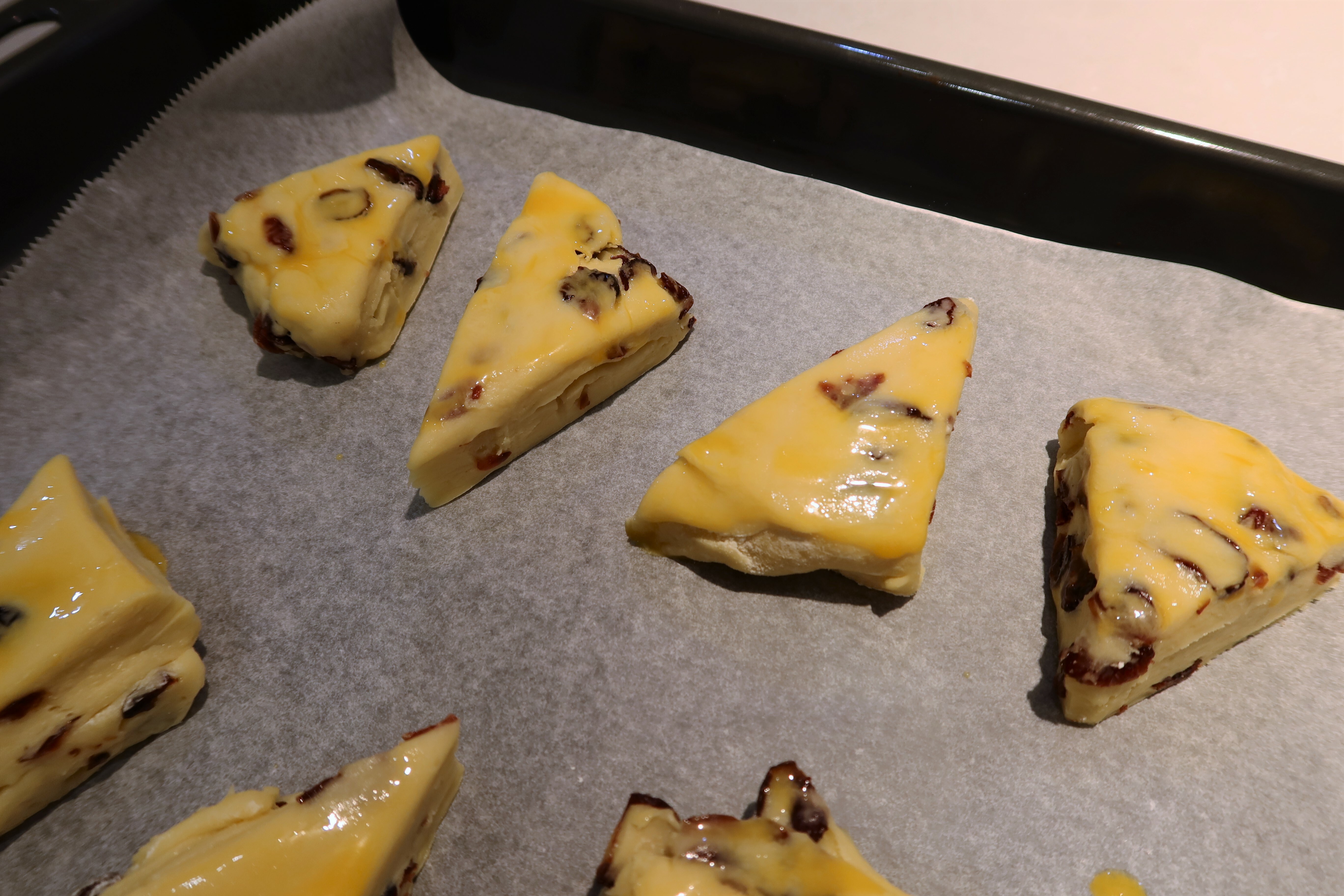 用切模或刀子將麵團切成喜歡的形狀,表面刷上蛋黃液