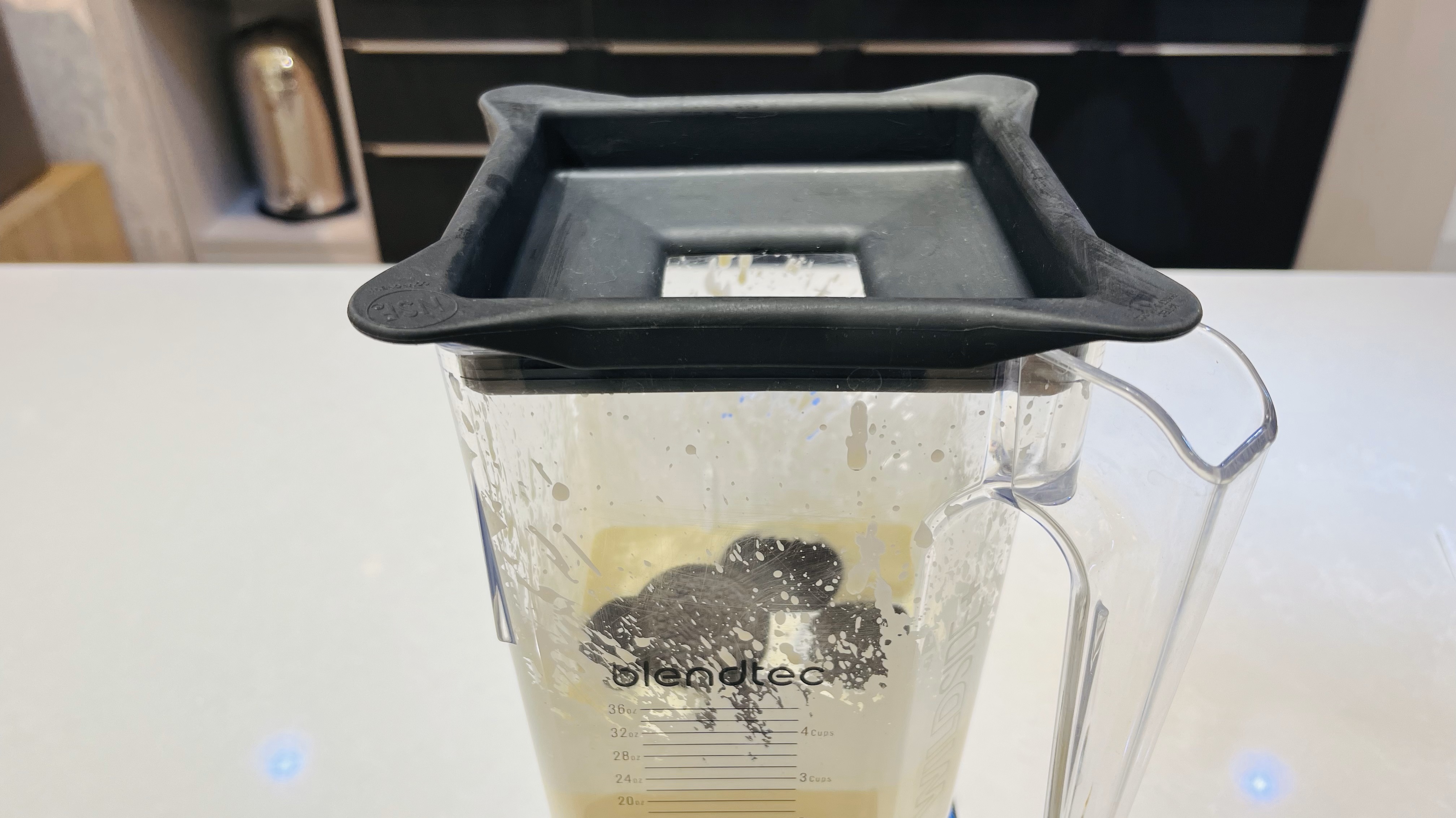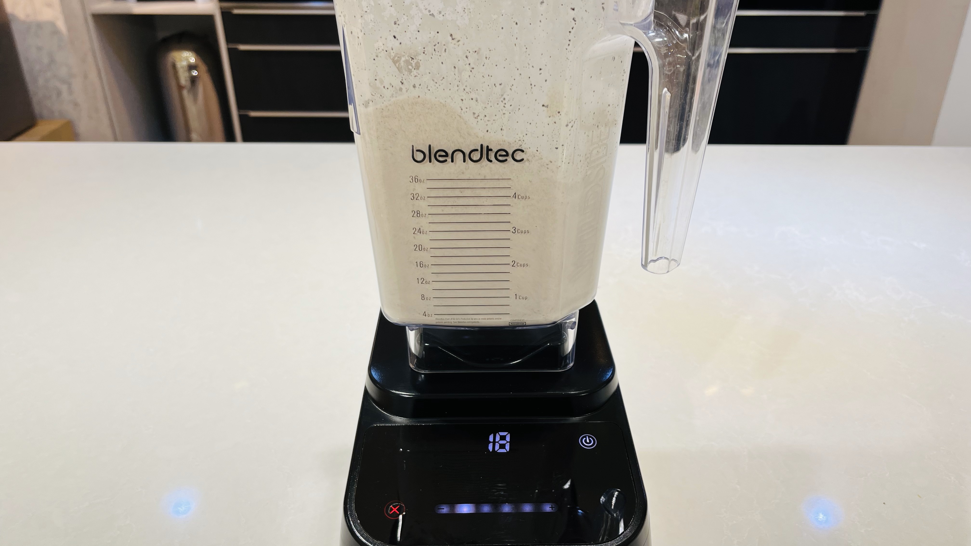 再把 4片 Oreo 餅乾和鮮奶油、砂糖、牛奶放入容杯,使用冰淇淋模式攪拌均勻