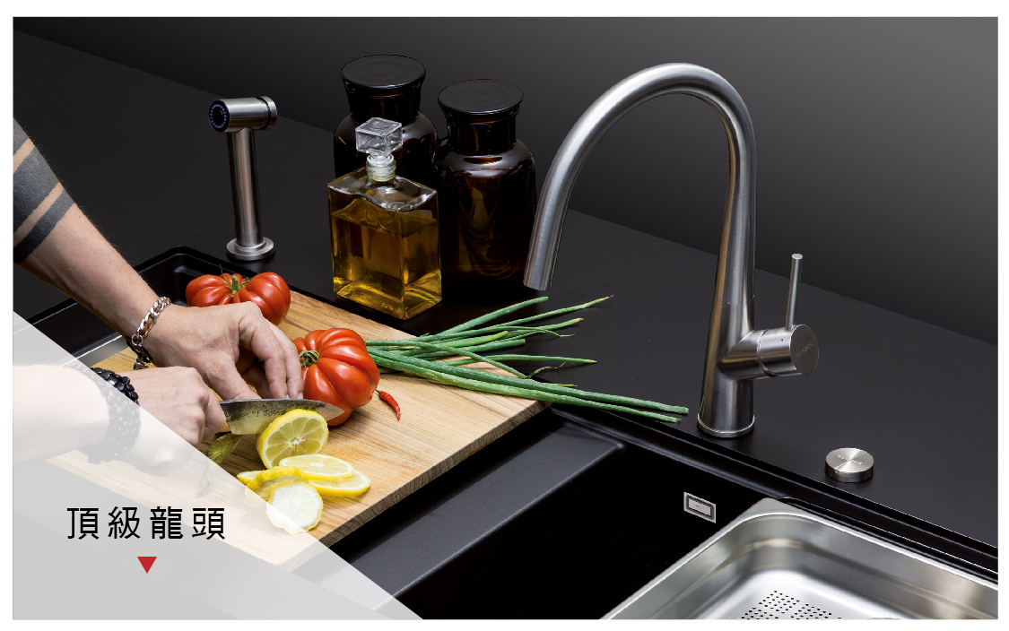 2009 推出 CRISTALITE® 和 CRISTADUR® 水龍頭 將 100% 相同的材質、品質和顏色的水槽和水龍頭結合在一起