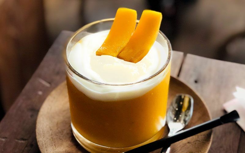 最後在上層舖上步驟 (1) 的西米露和芒果丁,即可享用