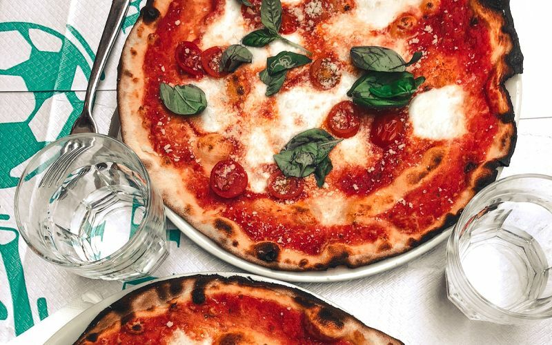 於表面抹蕃茄醬後,擺上乳酪塊、撒上乳酪絲