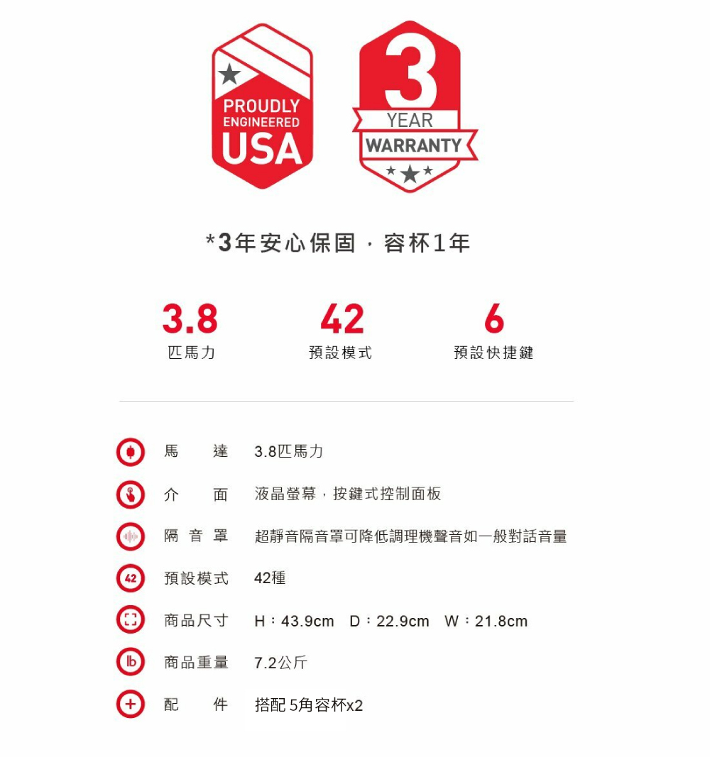 超靜音Stealth 885型:主機3年或使用次數12,500次保固、容杯1年保固