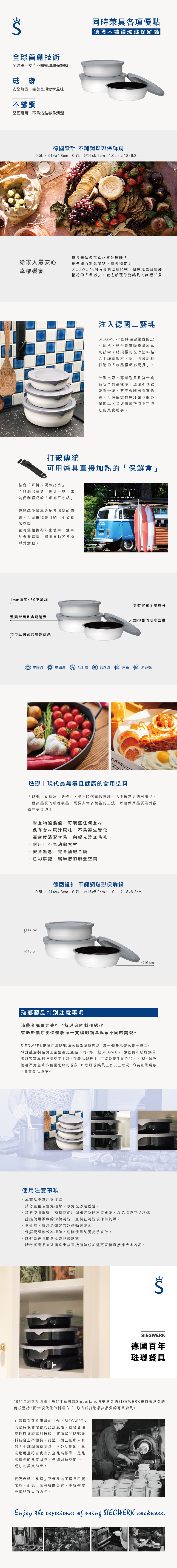 尺寸:0.5L /Ø14 x 4.3 cm, 0.7L /Ø16 x 5.2 cm, 1.0L /Ø18 x 6.2 cm