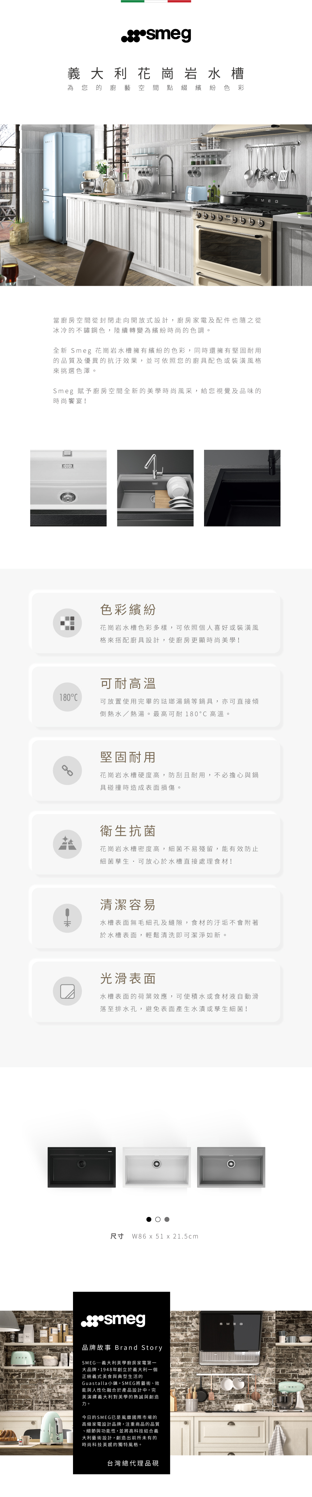 進口歐美各國的精品廚房家電品牌,包含Smeg